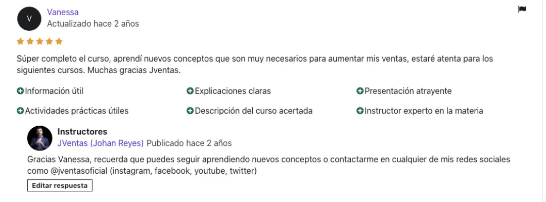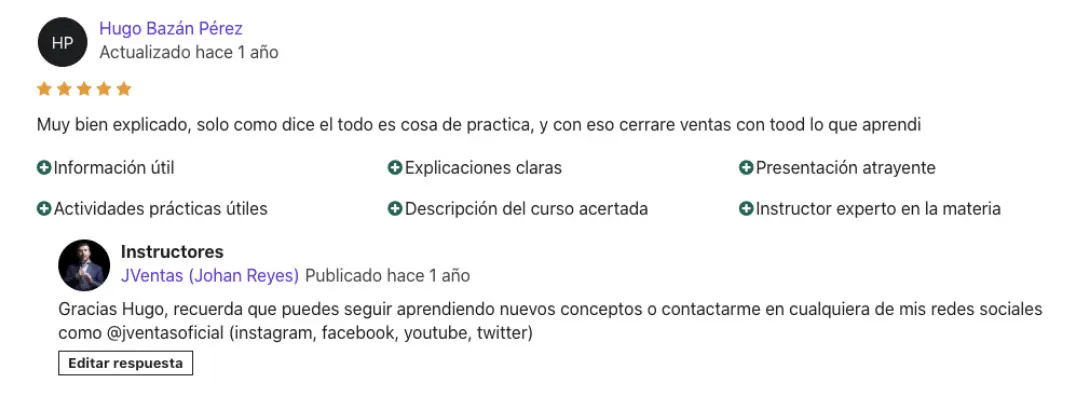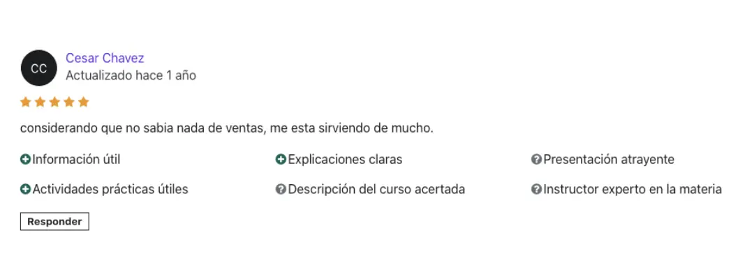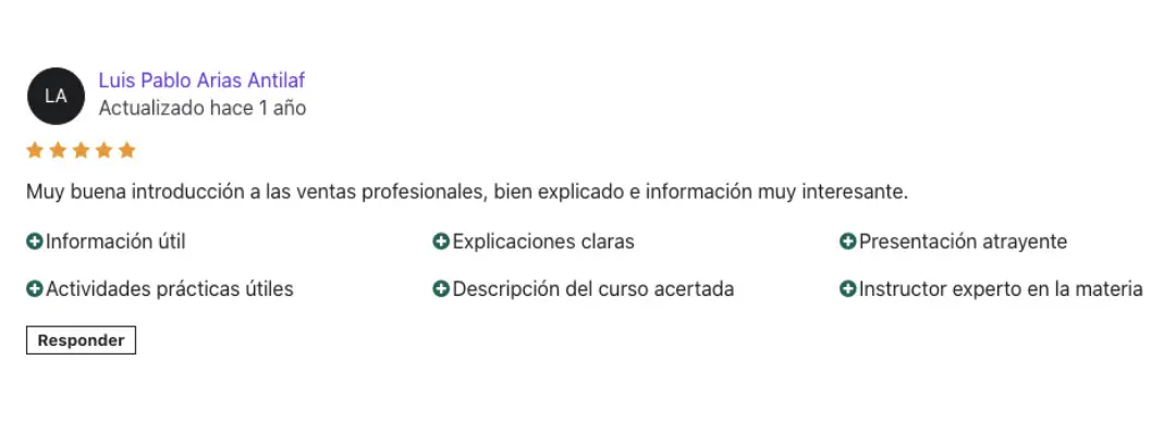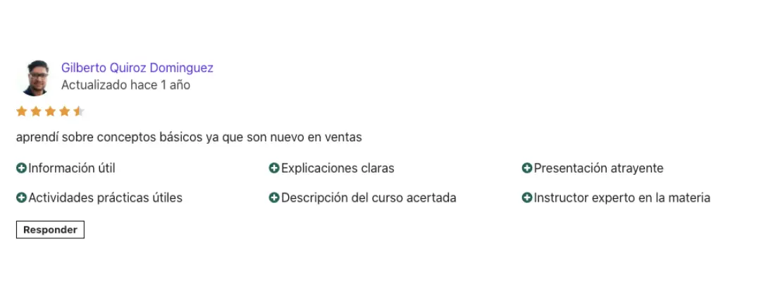 Este curso online te enseñará a dominar cada etapa del proceso de ventas, desde los fundamentos hasta técnicas avanzadas de persuasión y manejo de objeciones. Aprenderás a identificar oportunidades, superar desafíos y aplicar estrategias efectivas de inmediato. Además, tendrás acceso a ejercicios, plantillas y materiales prácticos para reforzar tu aprendizaje y mejorar tu desempeño en situaciones reales. Es hora de llevar tus ventas al siguiente nivel. 🚀