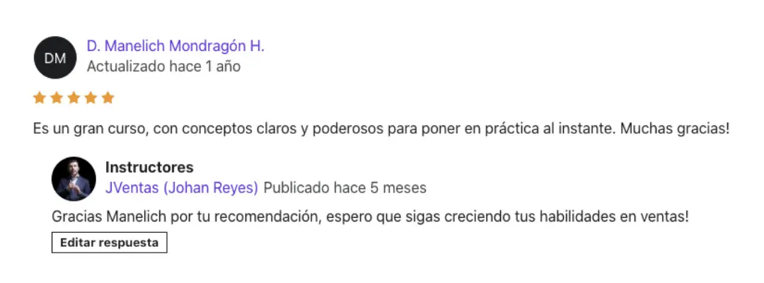 Mira cómo nuestros estudiantes han aplicado las estrategias del curso para alcanzar resultados extraordinarios. Desde aumentar cierres hasta superar objeciones con confianza, sus logros son prueba del impacto que este programa puede tener en tu carrera.